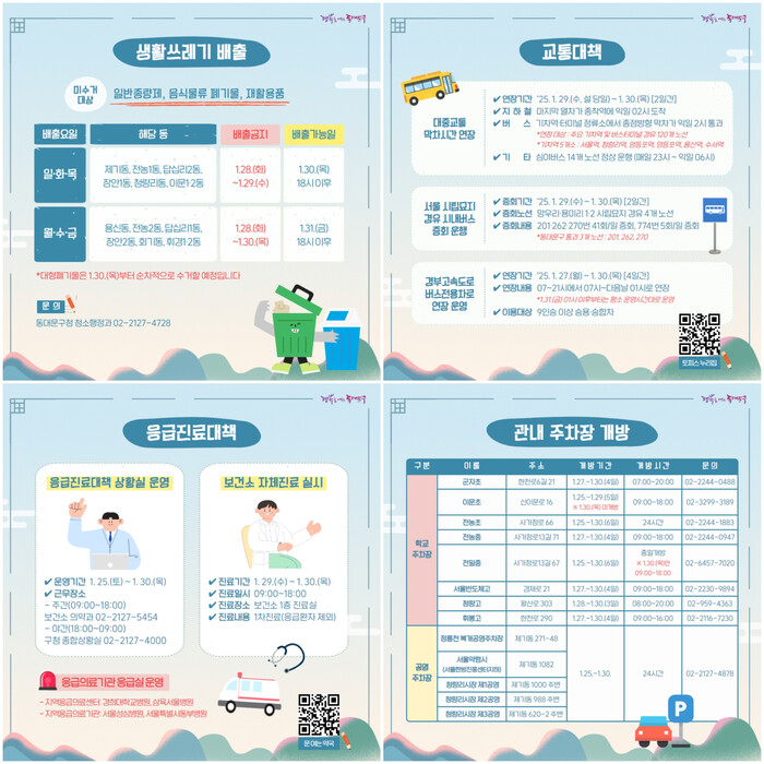 [시민일보 = 이대우 기자] 동대문구(구청장 이필형)가 구민들이 안전하고 따뜻한 설 명절을 보낼 수 있도록 24~31일 빈틈없는 ‘설 종합대책’을 추진한다.