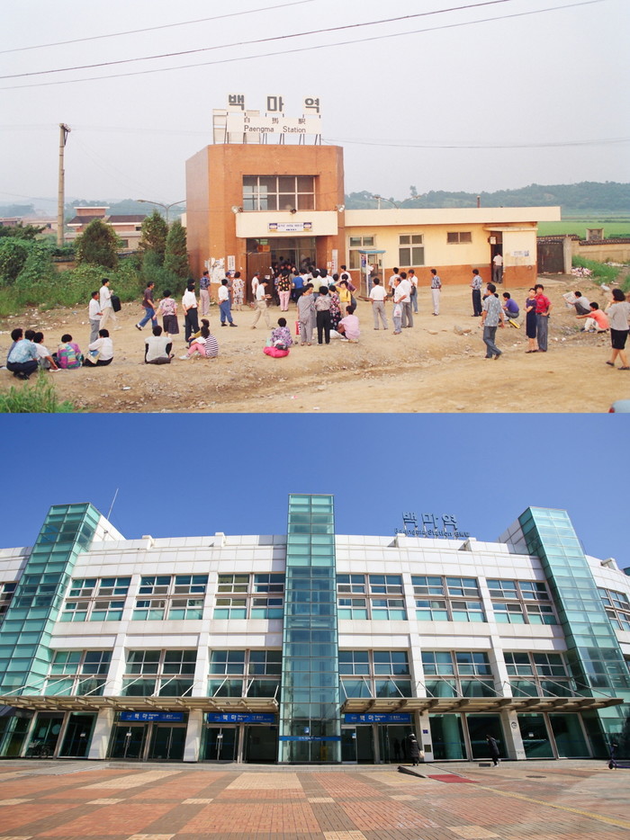 | ▲ 사진제공=고양시청/(위) 1980년대 백마역 (아래) 현재의 백마역 |
