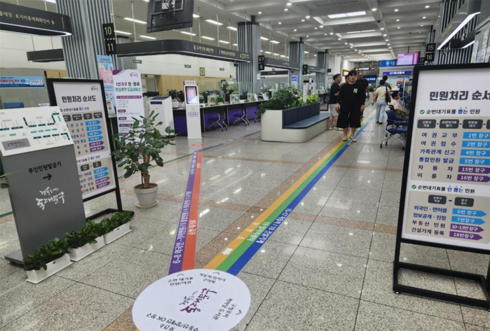 이에 구는 부서별로 색상을 구분해 주요 업무를 표시한 ‘민원 안내선’을 종합민원실 바닥에 부착, 주민들이 방문목적에 맞는 창구를 쉽게 파악할 수 있도록 했다고 25일 밝혔다.