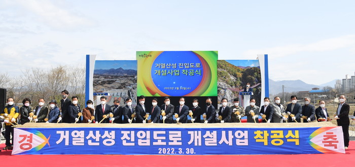 거창군은 지난 30일 거창읍 가지리 성산마을 일원에서 거열산성 진입도로 개설사업 착공식을 개최했다.