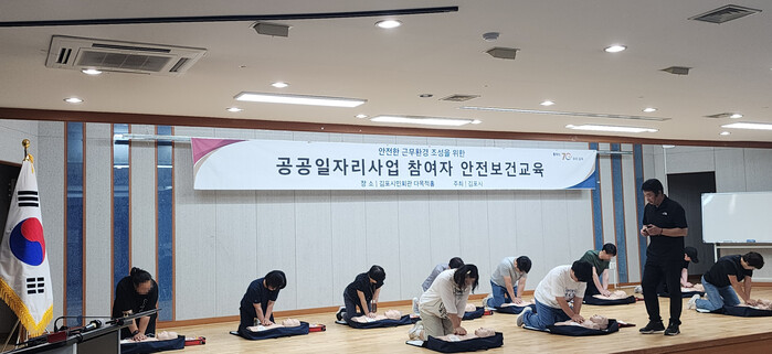 [김포=문찬식 기자] 경기 김포시는 16일 김포시민회관에서 공공근로 및 지역공동체일자리사업 참여자 35명을 대상으로 안전보건교육을 실시했다.