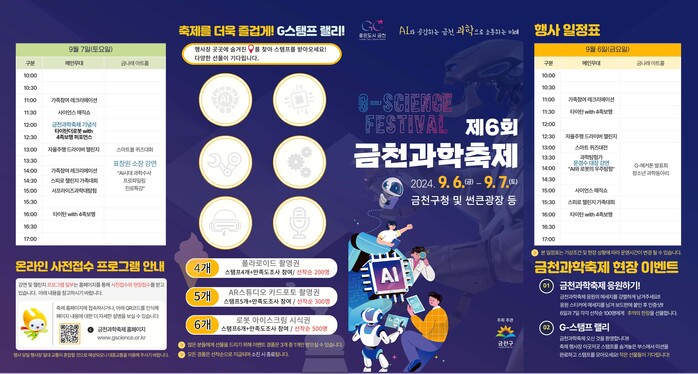 [시민일보 = 여영준 기자] 서울 금천구(구청장 유성훈)는 오는 6~7일 양일간 구청 일대에서 제6회 ‘금천과학축제’를 개최한다고 밝혔다.