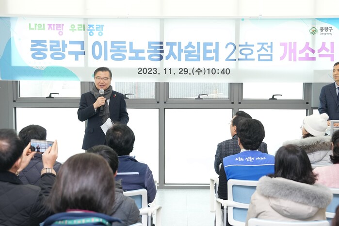 [시민일보 = 여영준 기자] 서울 중랑구(구청장 류경기) 양원공공주택지구 내에 지난 29일 이동노동자들을 위한 쉼터 2호점이 문을 열었다.