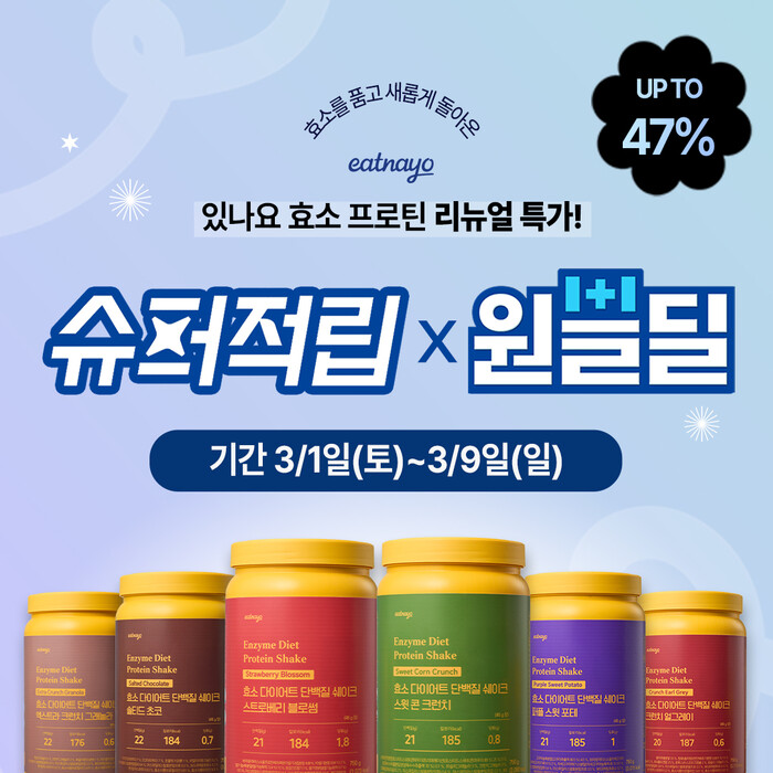 한편, 있나요는 리뉴얼 출시를 기념해 네이버에서 진행되는 슈퍼적립과 원쁠딜 행사에 참여한다. 슈퍼적립 혜택은 3월 한 달간 진행되며, 원쁠딜 행사는 3월 3일부터 3월 9일까지 운영된다. 행사 기간 동안 소비자들은 보다 합리적인 가격으로 있나요 단백질쉐이크를 구매할 수 있다.