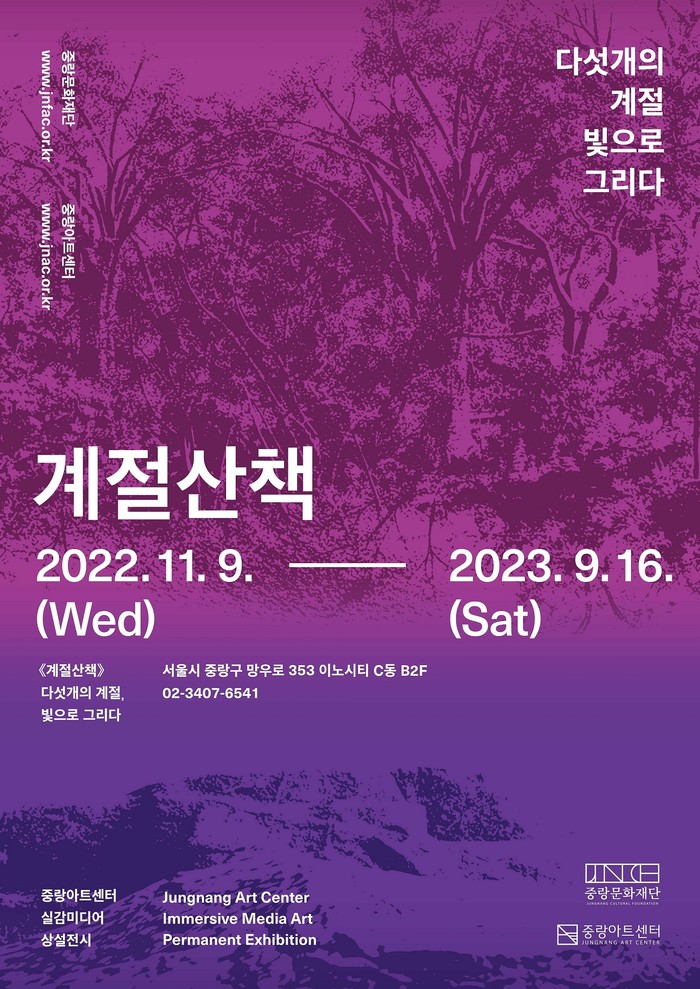 [시민일보 = 여영준 기자] 서울 중랑구(구청장 류경기)는 중랑아트센터가 서울 동북권 최초로 100평 규모의 실감미디어 전시실을 개관하고 내년 9월16일까지 상설 전시 ‘계절산책 - 다섯 개의 계절, 빛으로 그리다’를 개최한다고 밝혔다.