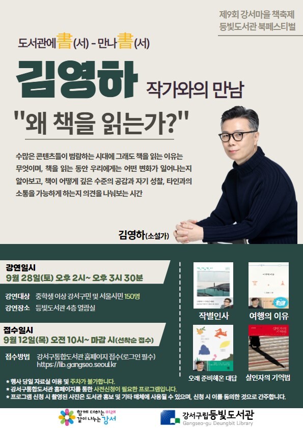 | ▲ ‘등빛도서관 북페스터벌 김영하 작가와의 만남’ 포스터 (사진 = 강서구청 제공) |