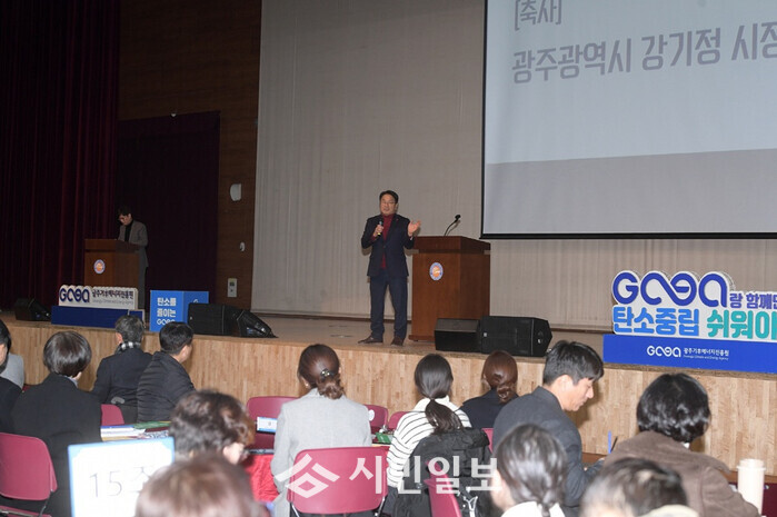 | ▲ 강기정 광주광역시장이 4일 오후 김대중컨벤션센터에서 열린 빛고을 기후위기 대응 시민총회에 참석하여 축사를 하고 있다. /광주광역시 제공 |