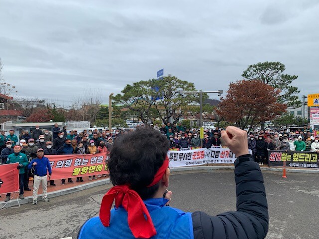 [성주=박병상 기자] 경북 성주군공무원노동조합(위원장 김상우)은 12일 오전 8시부터 성주군청 앞에서 성주군의회의 대규모 예산 삭감을 규탄하는 공무원 1인 시위를 벌이고 있다.