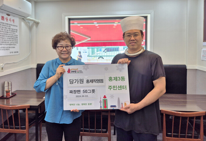 [시민일보 = 변은선 기자] 서울 서대문구 홍제3동은 지역내 소재한 중국음식점 ‘당가원 홍제직영점’이 최근 짜장면 나눔 봉사로 많은 박수를 받았다고 11일 밝혔다.