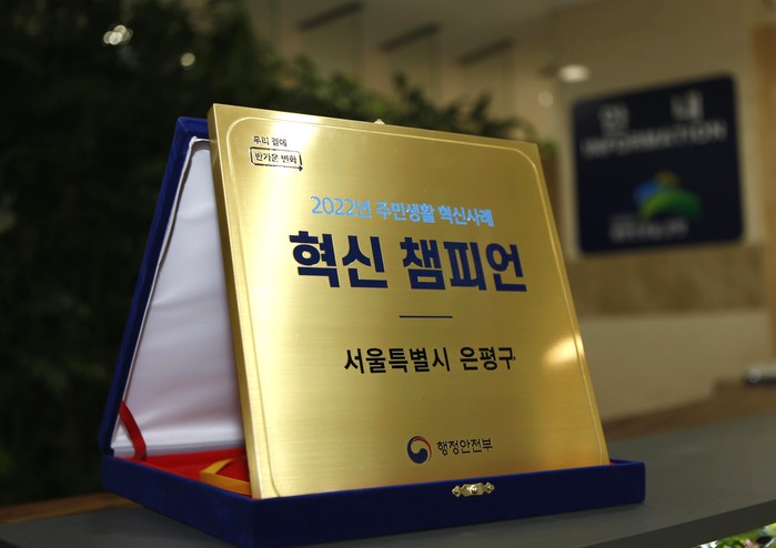 [시민일보 = 이대우 기자] 서울 은평구(구청장 김미경)는 행정안전부 '2022년 주민생활 혁신사례' 우수기관에 선정돼 ‘혁신 챔피언 인증패’를 수상했다고 밝혔다.