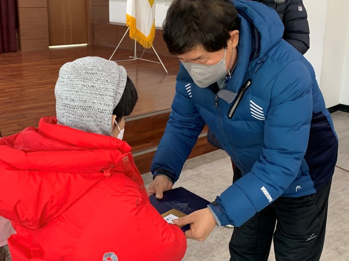 경기 양평군 양평읍지역사회보장협의체는 지역내 취약계층 학생들을 위한 장학금 지원사업인 ‘날개 Dream’ 사업을 추진해 최근 3주간 초·중·고·대학교 신입생 20명에게 장학금을 지원했다. 사진은 대상학생에게 장학금을 전달하는 모습. (사진제공=양평군청)