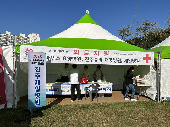 의료부스를 운영하는 병원은 제일병원, 한일병원, 복음병원, 반도병원과 목화요양병원, 센텀요양병원, 엠마우스요양병원, 진주노인요양병원, 진주중앙요양병원, 한빛요양병원으로 총 10개 기관에서 축제 현장 의료지원을 무료로 하고 있다.