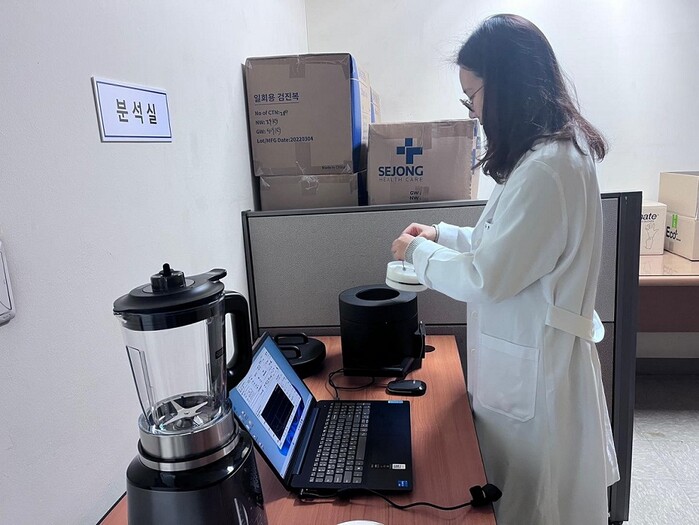 | ▲ 수산물 방사능 검사를 실시하는 모습. (사진=중랑구청 제공) |