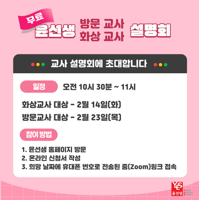 윤선생에 따르면 오는 14일에는 화상 교사, 23일에는 방문 교사 지원자를 대상으로 윤선생 소개와 교사의 업무, 비전에 대한 전반적인 설명을 진행한다.