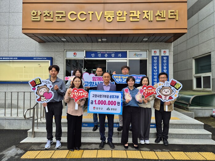 합천군 이규수 안전건설국장을 비롯한 안전총괄과 직원 10명과 함양군 직원 10명은 서로의 지자체에 각 100만원씩을 기부하며 지역발전을 응원했다.