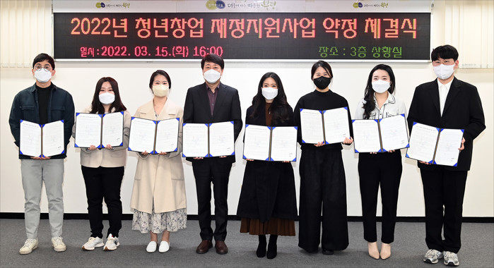 [인천=문찬식 기자] 인천 부평구가 15일 구청 상황실에서 '2022년 청년 창업 재정지원 사업' 선정자 8명과 지원 약정을 체결했다.