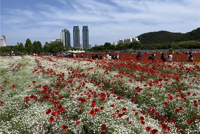 활짝 핀 꽃양귀비, 작약, 수레국화, 안개초, 금영화 등 6,000여만 송이 봄꽃이 관람객을 맞이한다.