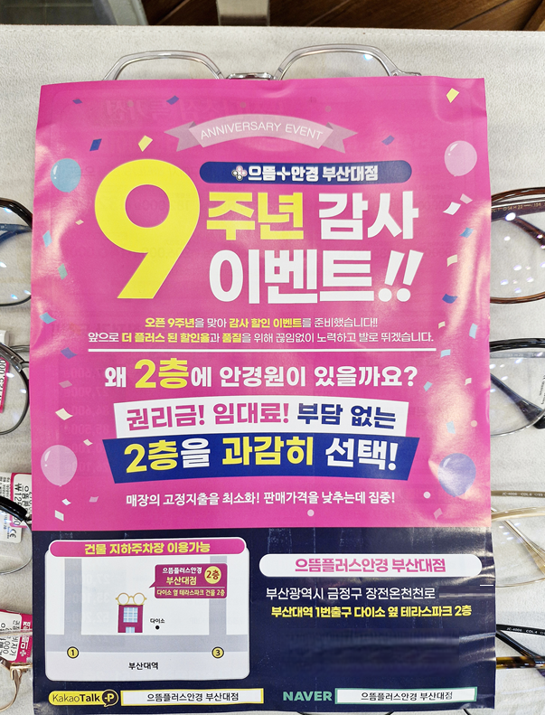 으뜸플러스안경 부산대점 관계자는 “9년 동안 매장을 찾아준 고객들의 신뢰에 보답하고자 이번 감사 이벤트를 기획했다”며 “정품 브랜드 렌즈만을 취급하며 합리적인 혜택으로 고객 만족도를 높이겠다”고 밝혔다.