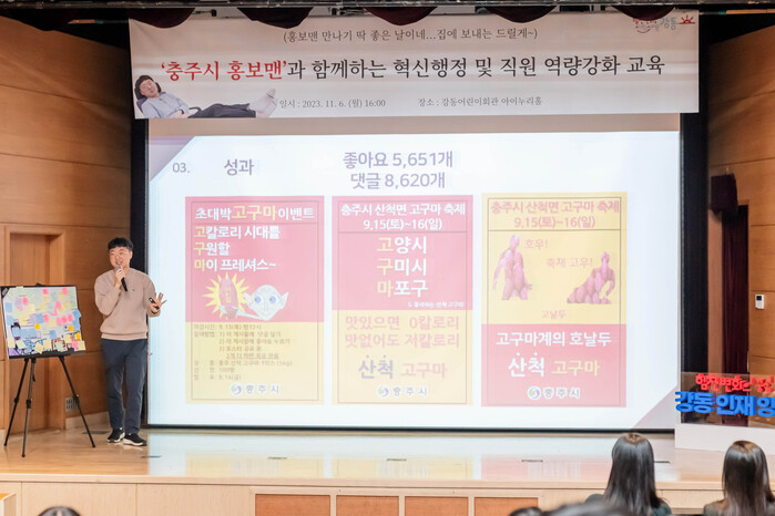 | ▲ 강동구, ‘충주시 홍보맨’과 함께하는 혁신행정 및 직원 역량강화 교육 (사진=강동구청 제공) |