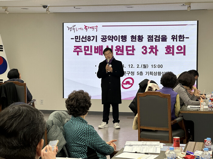 [시민일보 = 이대우 기자] 이필형 동대문구청장의 민선8기 공약이행현황을 공정하고 객관적으로 점검하기 위해 모인 ‘2024 동대문구 주민배심원단’이 ▲공약변경 2건 ▲공약폐기 4건을 포함, 20개 이상의 권고안을 동대문구에 제시하며 활동을 마무리했다.