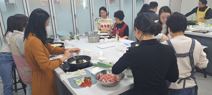 | ▲ 여성가족과-성남시 1인 가구 힐링 스페이스에서 ‘힐링키친’ 프로그램에 참여 중인 시민들(자료사진) |