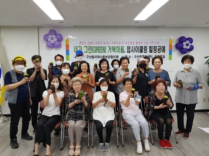 [시민일보 = 이대우 기자] 은평구(구청장 김미경) 구산동 지역사회보장협의체는 지난달 28일 ‘내가 그린(GREEN) 거북마을, 업사이클링 힐링공예’ 프로그램을 진행했다고 밝혔다.