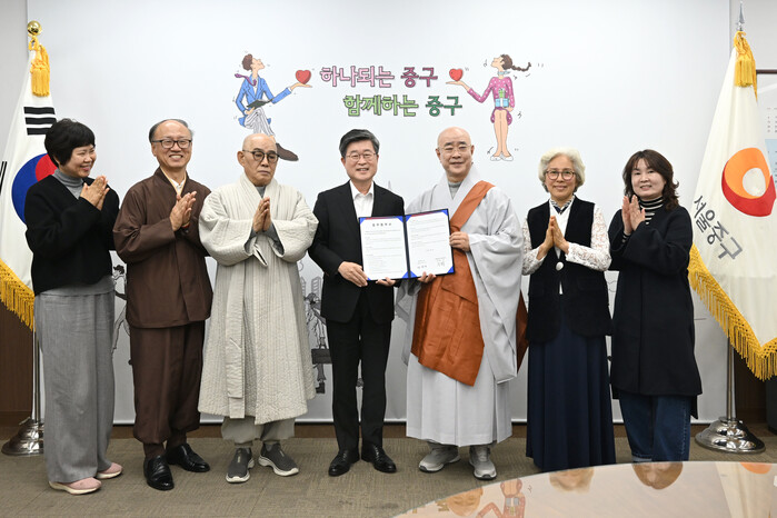 [시민일보 = 여영준 기자] 중구(구청장 김길성)가 최근 중구 불교협의회와 지역사회 발전과 주민의 삶의 질 향상을 위한 업무협약을 체결했다.