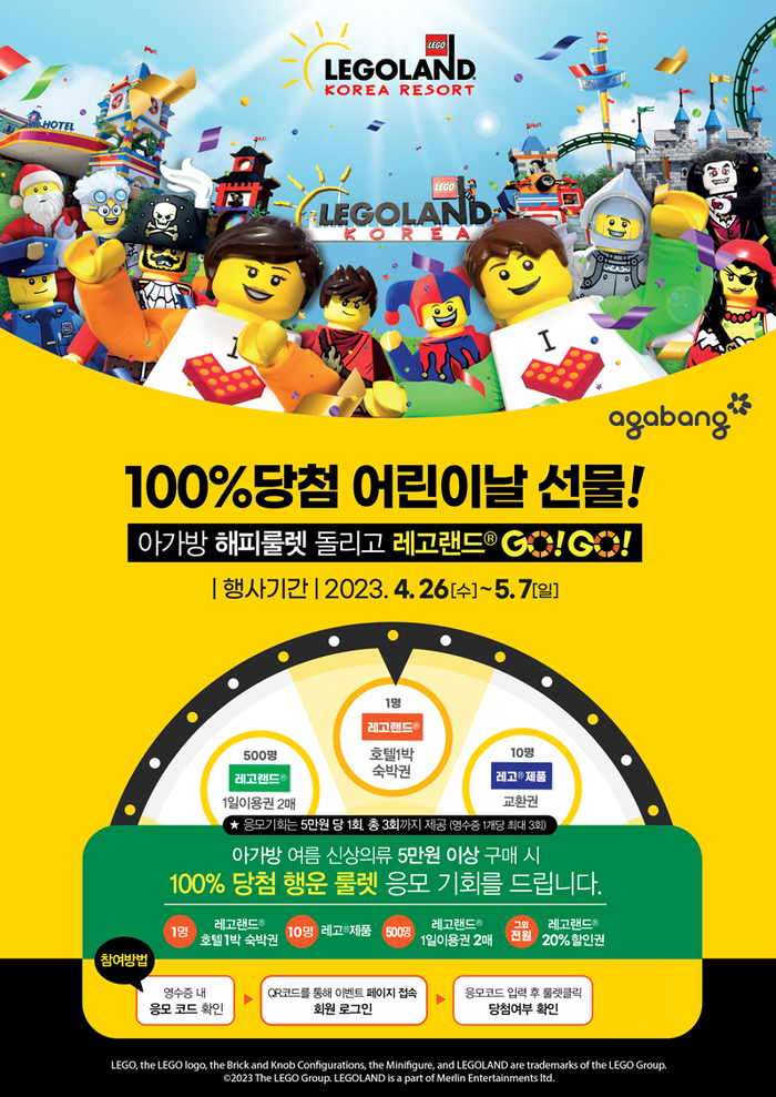 대한민국 대표 유아동 브랜드 아가방이 레고랜드 코리아와 함께 어린이날 프로모션을 진행한다.