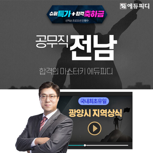 이에 에듀피디는 광양시 공무직 공개채용 시험에 맞춰 ‘일반상식(환경상식 포함)+지역상식(광양시)’ 전 범위 ‘이론+문제풀이’ 구성의 ‘합격패키지’ 강좌를 30일 단기 속성 과정으로 오픈하고 짧은 기간 최적의 학습 효과를 끌어낼 수 있는 전문 강좌 커리큘럼을 선보인다.