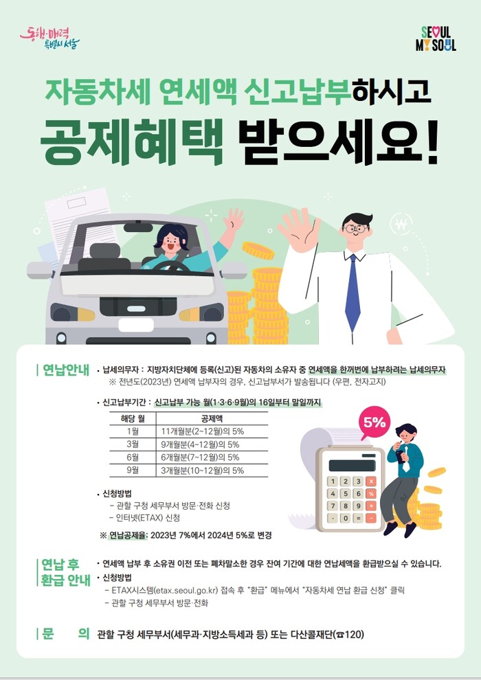 [시민일보 = 이대우 기자] 서울 구로구가 1월 31일까지 2024년 자동차세 연납 신청을 받는다.