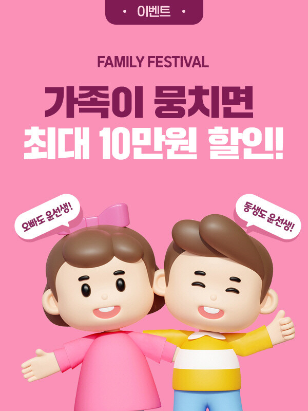 [시민일보 = 여영준 기자] 영어교육 전문기업 윤선생은 오는 31일까지 가족회원 신규가입 이벤트 ‘패밀리 페스티벌(Family Festival)’을 진행한다고 8일 밝혔다.