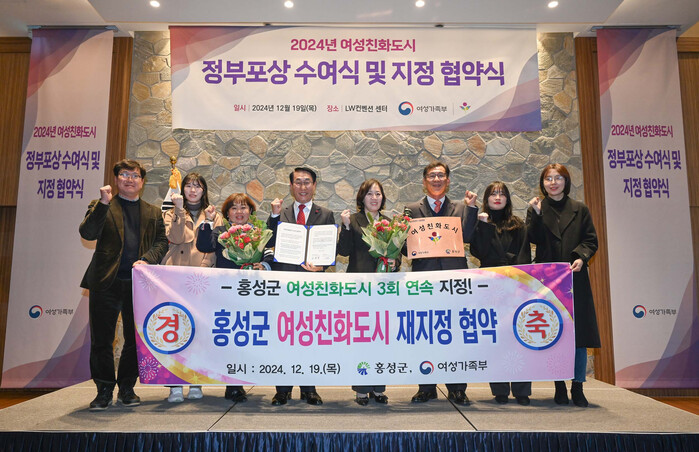 [홍성=최복규 기자] 충남 홍성군이 최근 서울 LW컨벤션센터에서 여성가족부와 여성친화도시 지정 협약을 체결하고 인증 현판을 수여받았다.