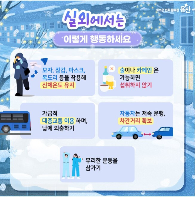 [시민일보 = 문민호 기자]용산구(구청장 박희영)는 본격적인 겨울 추위가 시작됨에 따라, 구민들이 안전하게 겨울을 보낼 수 있도록 한파 대응체계를 마련했다.