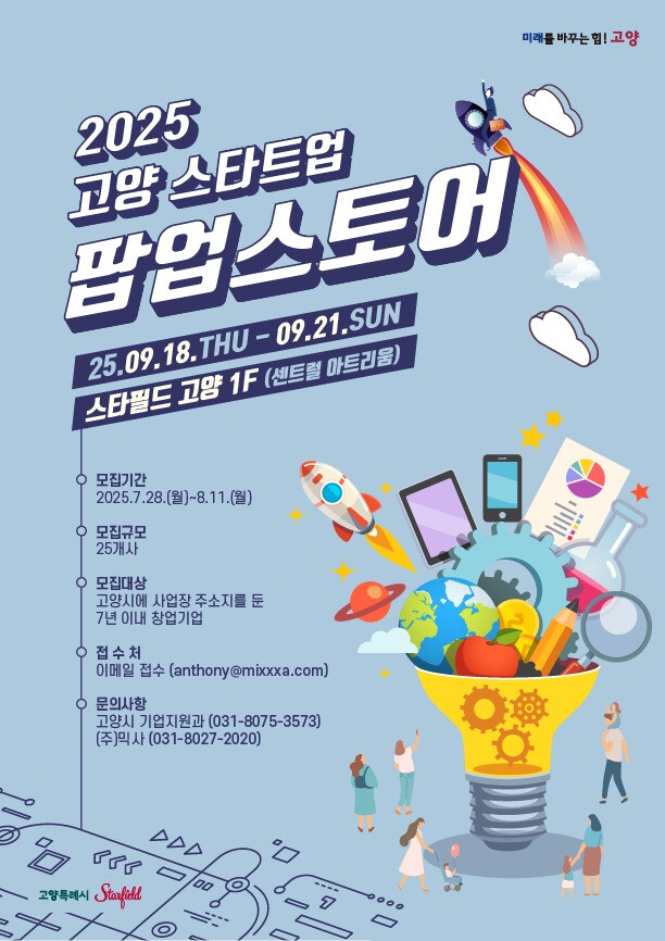 [시민일보 = 민장홍 기자] 경기 고양시는 시민과 연계한 창업기업 판로지원을 위해 ‘2025 고양 스타트업 팝업스토어’에 참가할 기업을 오는 8월11일까지 모집한다고 밝혔다.