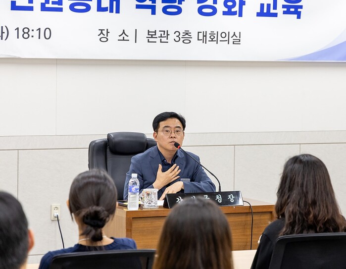 | ▲ 진교훈 서울 강서구청장이 ‘민원담당 공무원 민원응대 역량 강화 교육’에서 직원들을 격려하고 있다. (사진=강서구청 제공) |