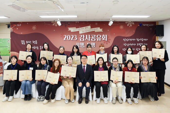 이번 감사공유회는 2023년 한 해 동안 관내 청소년의 진로를 위해 교육 기부활동을 이어온 구로진로교육지원단에 감사의 마음을 전하고 학부모진로지원단 양성 과정을 수료한 학부모 23명을 제1기 학부모진로지원단으로 위촉하고자 마련됐다.