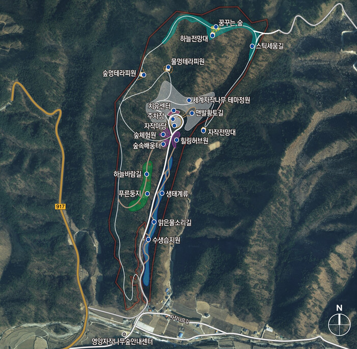 경상북도는 영양군과 함께 치유의 숲 조성 필요성을 뒷받침하기 위해 올해 3월 국립 영양자작누리 치유의숲 조성 기본구상 연구용역을 완료했고 이를 토대로 산림청·기획재정부에 국비 지원을 지속적으로 건의해 왔다. 특히 지역 국회의원과 협력한 적극적 노력으로 내년도 예산을 확보하는 성과를 거뒀다.