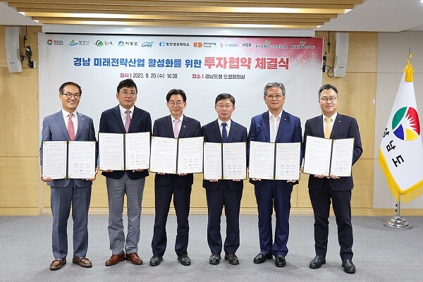 지난 20일 경남도청에서 김병규 경남도 경제부지사, 이병철 함안 부군수, 박계출 함안상공회의소 회장, 오주열 HSR(주), 교보AIM자산운용(주), 교보리얼코(주) 대표이사 등이 참석한 가운데 ‘함안 산업단지 내 태양광 프로젝트’ 업무협약을 체결했다.