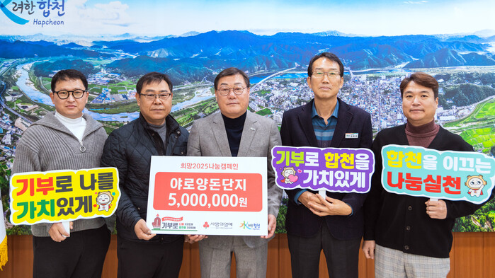 한편, 합천군 야로양돈단지는 2020년부터 매년 500만 원의 성금을 기탁하며 지역사회와 소외계층을 위한 나눔을 이어오고 있다.