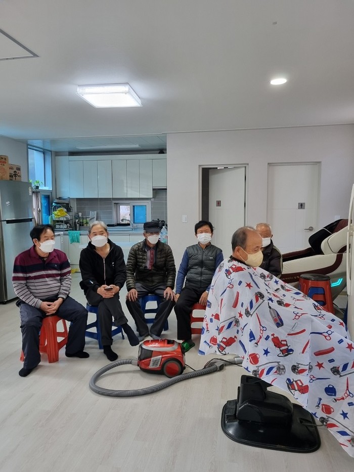 경기 동두천시 보산동행정복지센터가 7일 평소 이발 및 위생 관련 도움의 손길이 필요했던 걸산동 노인 10명을 대상으로 이발·미용 봉사를 했다. 사진은 이날 대상 노인들이 이발·미용 봉사를 받고 있는 모습. (사진제공=동두천시청)