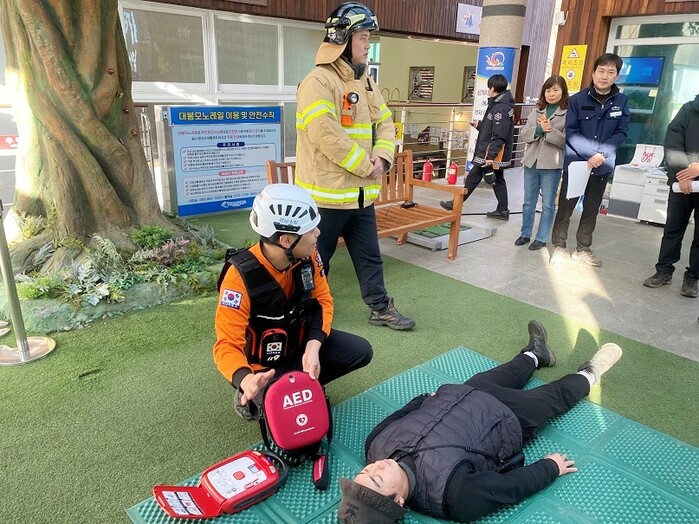 이날 훈련은 이용객의 안전 확보를 위해 돌발상황에 대한 신속한 대응체계를 구축하여 이용객 전파, 상황별 조치, 관계기관 협조, 사후 조치 등 안전사고를 예방하기 위해 마련됐다.
