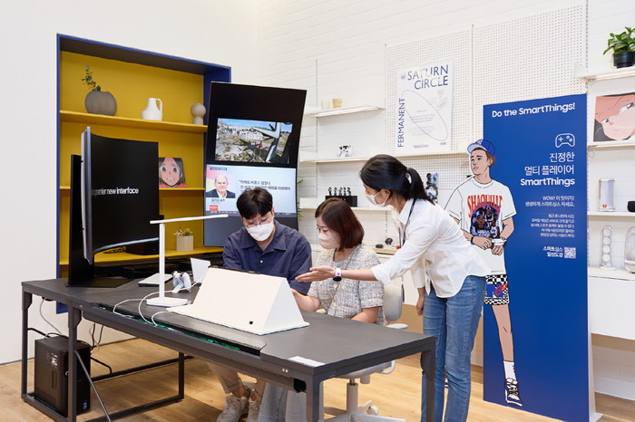 스마트싱스 체험존은 ▲홈 엔터테인먼트 ▲홈 스튜디오 ▲홈 피트니스 ▲홈 쿠킹 ▲게임룸 ▲반려동물 돌봄 등 6개의 주제별 공간에서 멀티 디바이스 연결을 통한 편리한 생활상을 제안한다는 게 회사측의 설명이다.