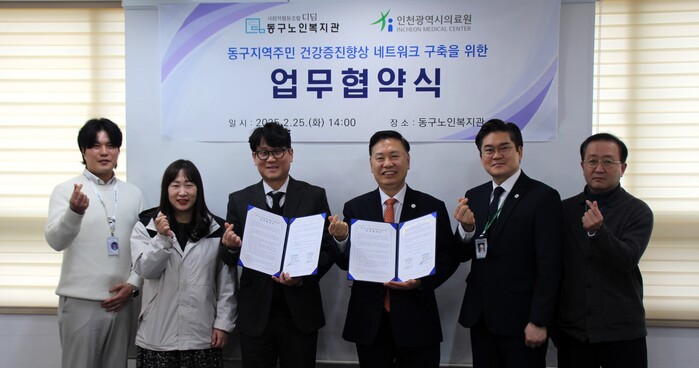 [인천=문찬식 기자] 인천 동구노인복지관(관장 이규강)과 인천광역시의료원(원장 장석일)은 지난 25일 동구 노인의 건강과 복지 향상을 위한‘건강증진향상 네트워크’구축을 위한 협약을 체결했다고 밝혔다.