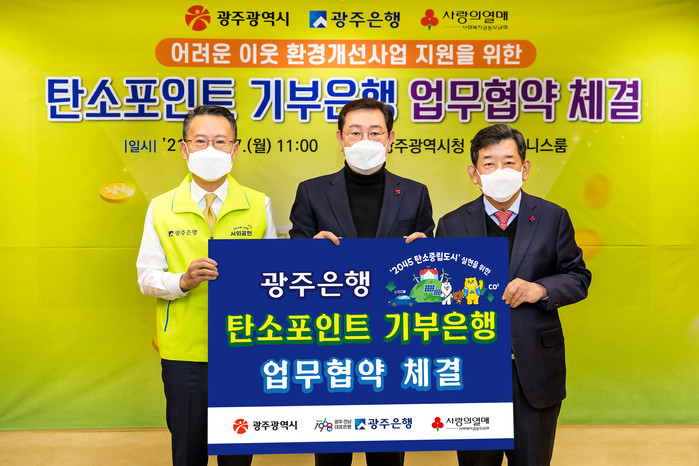 탄소포인트제는 가정에서 전기와 수도, 가스 사용량을 절감할 경우 포인트로 환산하여 광주시민들에게 인센티브를 제공하는 제도로, 이 포인트를 광주광역시를 통해 광주사회복지공동모금회로 기부하면 그 기부금액만큼 광주은행에서도 후원금을 전달할 계획이다.