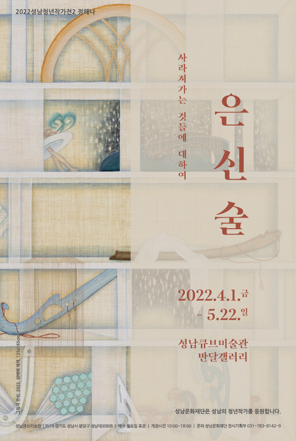 [성남=오왕석 기자] 성남문화재단이 지역의 청년작가를 발굴·지원하는 ‘2022 성남청년작가전’의 두 번째 전시로 정해나 작가의 <은신술>展을 오는 4월 1일(금)부터 5월 22일(일)까지 성남큐브미술관 반달갤러리에서 개최한다.