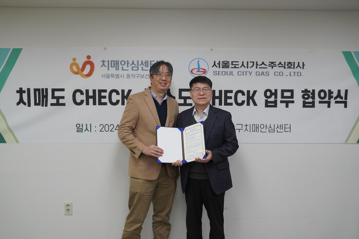 [시민일보 = 여영준 기자] 사을 동작구(구청장 박일하)는 치매에 대한 인식개선 및 적극적인 돌봄망 강화를 위해 지난 20일 ㈜서울도시가스와 전국 최초로 ‘치매도 CHECK, 가스도 CHECK’ 업무 협약을 체결했다고 밝혔다.
