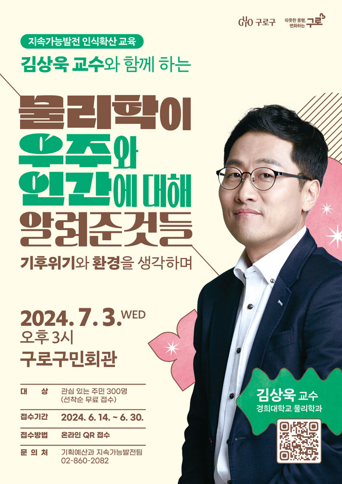 [시민일보 = 이대우 기자] 서울 구로구(구청장 문헌일)가 지속가능발전 인식확산을 위해 김상욱 교수의 특별한 강의를 마련했다.