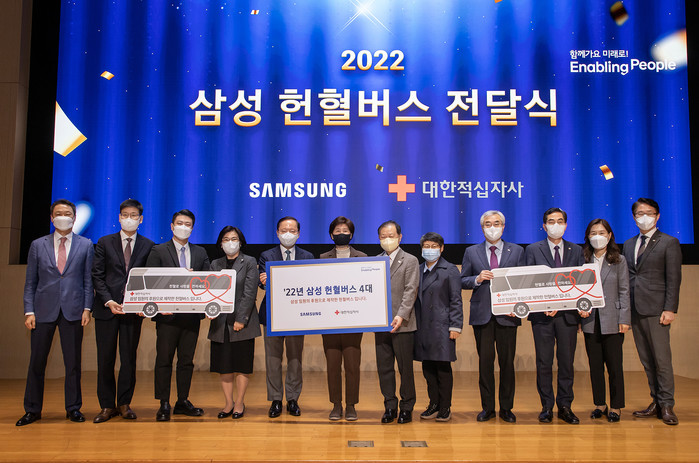 삼성전자에 따르면 올해 1월 삼성 관계사 임원들은 지난 2021년 12월에 받은 특별격려금의 10%를 자발적으로 기부해 100억여원의 기부금을 조성, 혈액 부족 문제 해소를 위한 신형 헌혈버스 제작에 사용하도록 대한적십자사에 전달했다.