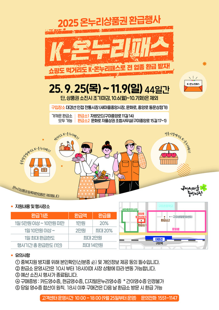 전통시장 이용 촉진과 지역경제 활성화를 위해 마련된 '2025 K-온누리패스(온누리상품권환급) 행사'는 25일부터 11월9일까지(44일간) 열린다.