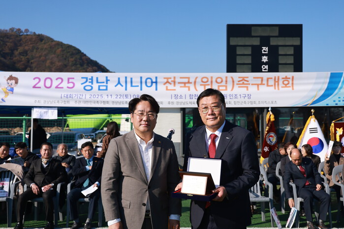 또한 이날 대한민국족구협회에서 족구발전 공로에 대한 감사패를 김윤철 합천군수에게 수여해 훈훈한 분위기를 더했다.